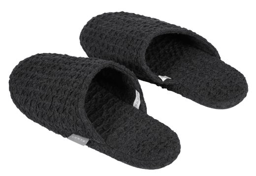 Das Material der Leinen-Badeslipper besteht aus einer wunderbar groben Waffelstruktur aus Baumwoll-Leinen-Mischung. Die Slipper verfügen über eine harte, rutschfeste Sohle. Die Größen der Slipper sind S/M oder L/XL.